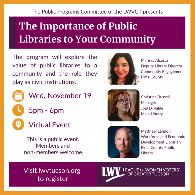 Empowering voters and defending democracy in Southern Arizona since 1941. | The next TWGT will be Monday, December 1.